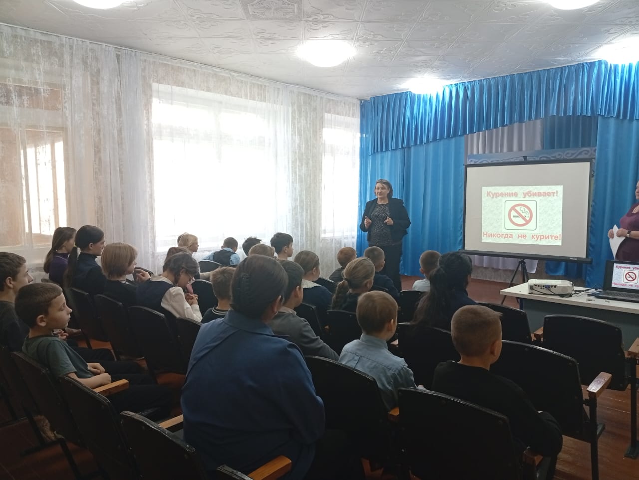 Әлеуметтік педагог кітапханашы Н. В. Демиденкомен бірге оқушылармен жаман әдеттер мәселесі бойынша әңгімелер жүргізілді. Темекі шегу зиянсыз әрекет емес, оны қиындықсыз тастауға болады. Бұл нағыз есірткі маниясы және одан да қауіпті, өйткені көптеген адамдар байыпты қабылдамайды.