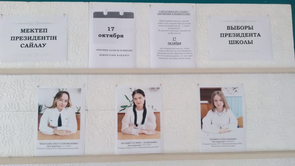 В рамках подготовки к выборам был оформлен стенд «Выборы Президента школьного парламента – 2025», где размещались фотографии кандидатов, их программы, биографические данные. Каждый кандидат представил свою предвыборную программу и выступил перед школьным коллективом в ходе агитационной кампании.