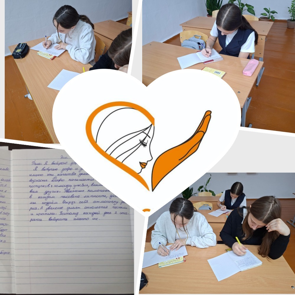 «Зорлық-зомбылыққа қарсы 16 күн» онкүндігі аясында 4.12.2025 біздің мектепте «мен жақсылық пен сыйластықты таңдаймын» тақырыбында эссе байқауы өтті, онда балалар жақсы іс-әрекеттер мен басқа адамдарға құрметпен қарауды таңдаудың маңыздылығы туралы ойларымен бөлісті. Қатысушылар жеке тәжірибелер, өмірден алынған мысалдар және кішкентай әрекеттер айналадағы әлемді қалай жақсарта алатыны туралы айтты.